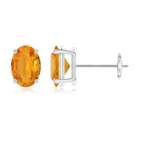 14k-W Prong Set Solitaire Oval Orange Sapphire Stud Earrings
